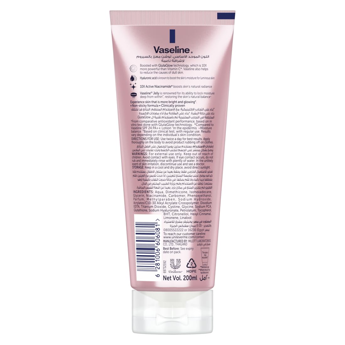 Vaseline Essential Even Tone Body Lotion with moisturising petroleum jelly, Flawless Glow, Gluta-Hya Serum Burst UV, 10X More Powerful than Vitamin C, 200ml